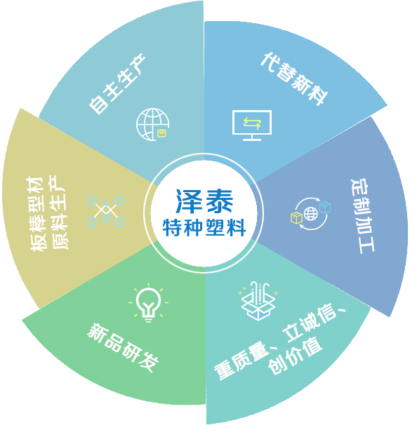 溫州澤泰特種塑料有限公司專業致力于特種工程塑料產品的擠出、注塑、模壓及機械加工,特別在PEEK(聚醚醚酮)、 PI(聚酰亞胺)行業有多年的生產加工經驗。專業生產耐磨自潤滑塑料原料、耐磨耐高溫塑料原料、鐵氟龍增強耐磨塑料、碳纖維增強塑料、導電防靜電塑料、PI原料、PPS原料、peek原料、PEI原料、高溫尼龍原料、PEEK板材、PEEK棒材、PEI板材、PPSU棒材、PPS板材、PPS棒材、PPS加纖、PEI加纖、PEEK加纖、防靜電peek原料、防靜電pps原料、耐磨pi顆粒、pps加碳纖維、peek加碳纖維、高溫尼龍等,為不同行業提供特種工程塑料成品零配件及半成品型材的研發、設計、生產一體化解決方案。